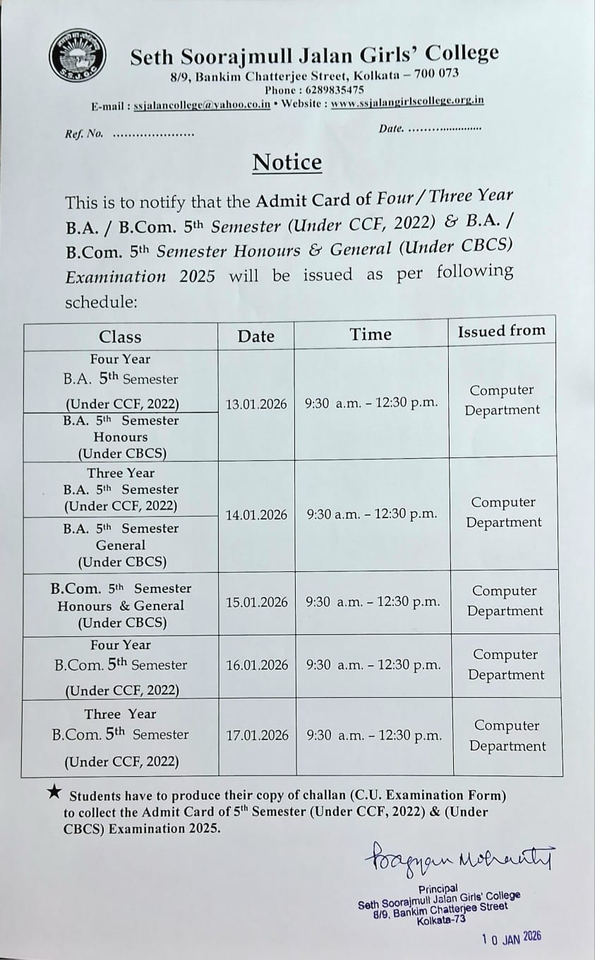 Notice for Issue of Admit Card of B.A. & B.Com 5th Semester Examination 2025(Under CCF & CBCS)